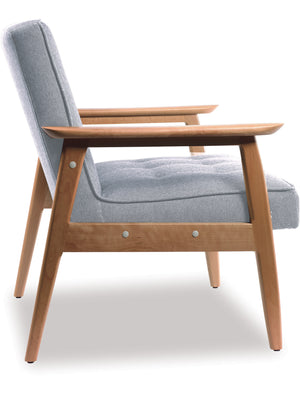 Sit back and embrace the comfort of the Sesame armchair. Featuring curved wooden arms and legs and upholstered in Light grey fabric, the Sesame armchair is a great option to contrast your existing furniture.