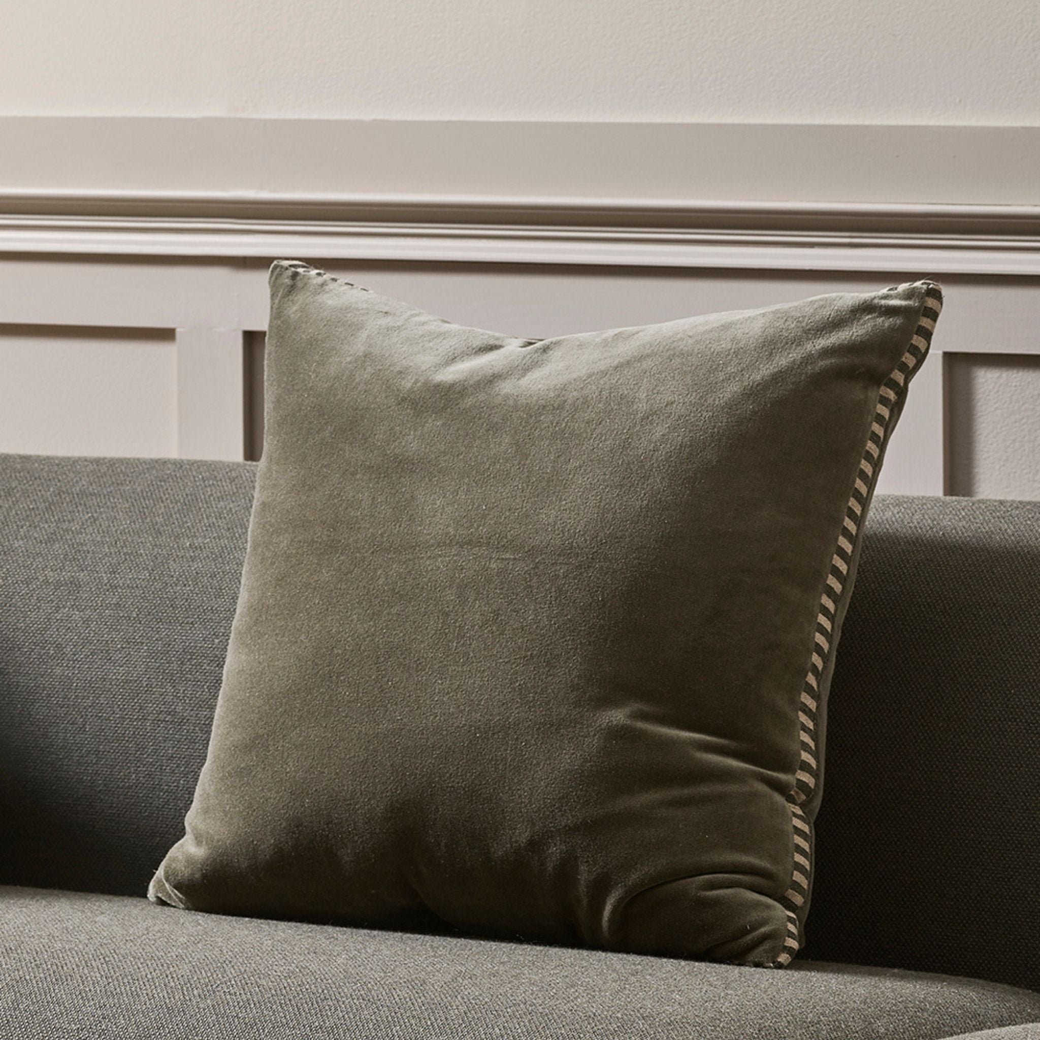 Create an alluring, sophisticated space with the sculpted, cylindrical form of the Elliot bolster. Balancing softness and structure, plush chocolate velvet is edged with striped linen piping, for a piece that is both visually striking and inviting to touch. Designed to bring dimension and luxury to everyday living, Elliot pairs beautifully with the boxy silhouette of the Edward cushion - creating a layered aesthetic that feels timeless and considered.
